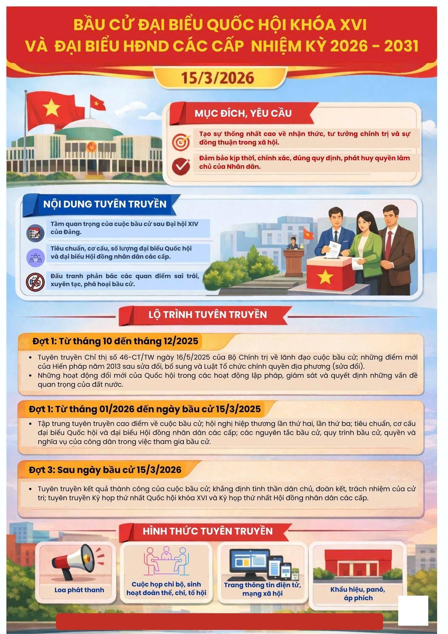 ĐẨY MẠNH TUYÊN TRUYỀN BẦU CỬ ĐẠI BIỂU QUỐC HỘI KHÓA XVI VÀ ĐẠI BIỂU HỘI ĐỒNG NHÂN DÂN CÁC CẤP NHIỆM KỲ 2026 - 2031