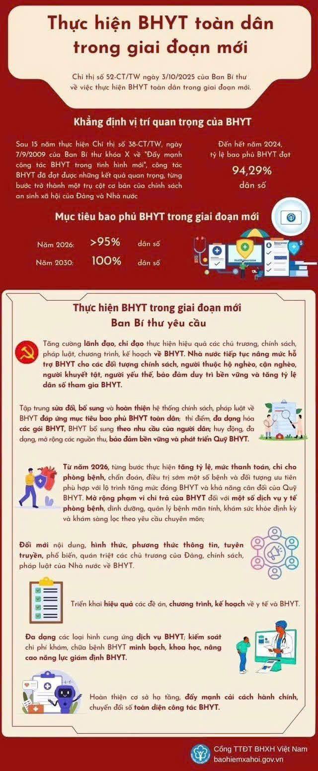 Thực hiện Chỉ thị số 52-CT/TW, ngày 03/10/2025 của Ban Bí thư về bảo hiểm y tế toàn dân trong giai đoạn mới, Ban Thường vụ Tỉnh ủy Tây Ninh đã ban hành Chương trình triển khai thực hiện trên địa bàn...