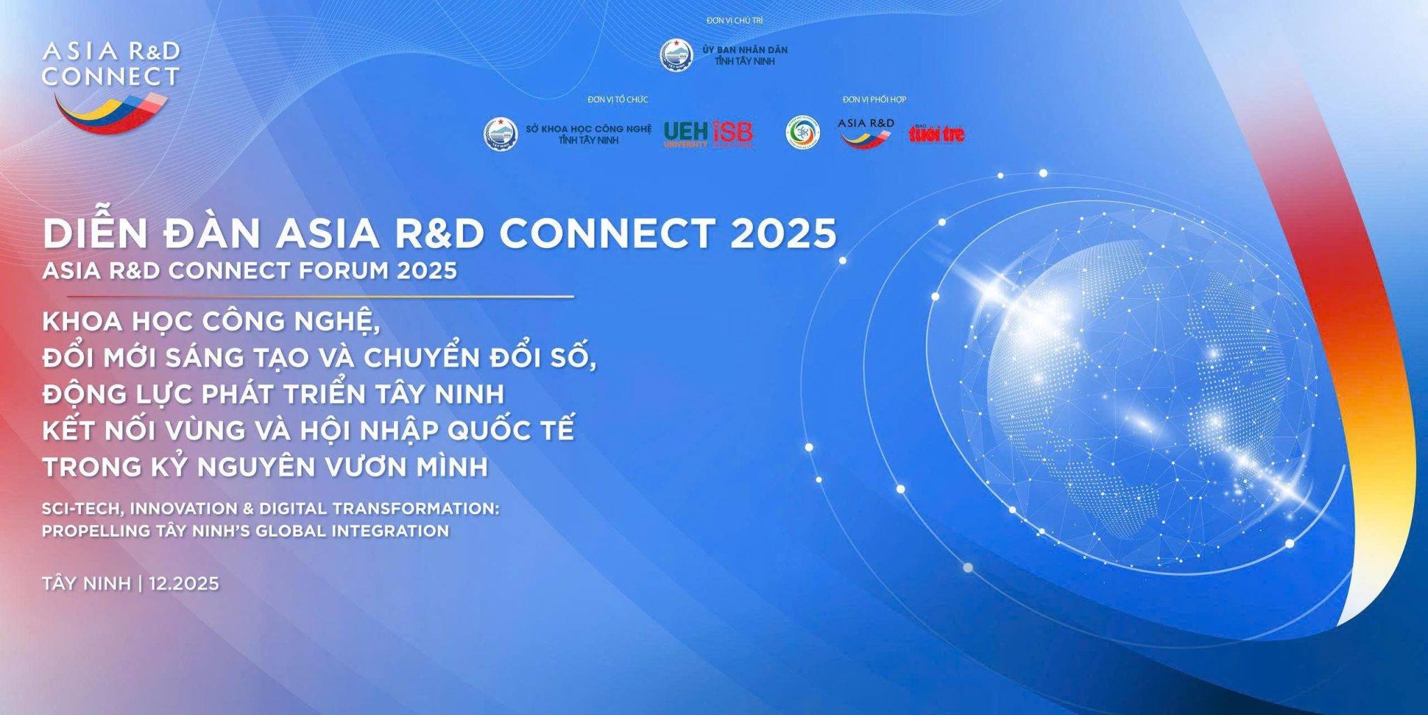 Ủy ban nhân dân tỉnh Tây Ninh chủ trì tổ chức Diễn đàn quốc tế ASIA R&D CONNECT 2025, sẽ diễn ra vào ngày 12 tháng 12 năm 2025, tại Hội trường Thống nhất – UBND Tỉnh Tây Ninh. Sự kiện quy mô quốc...